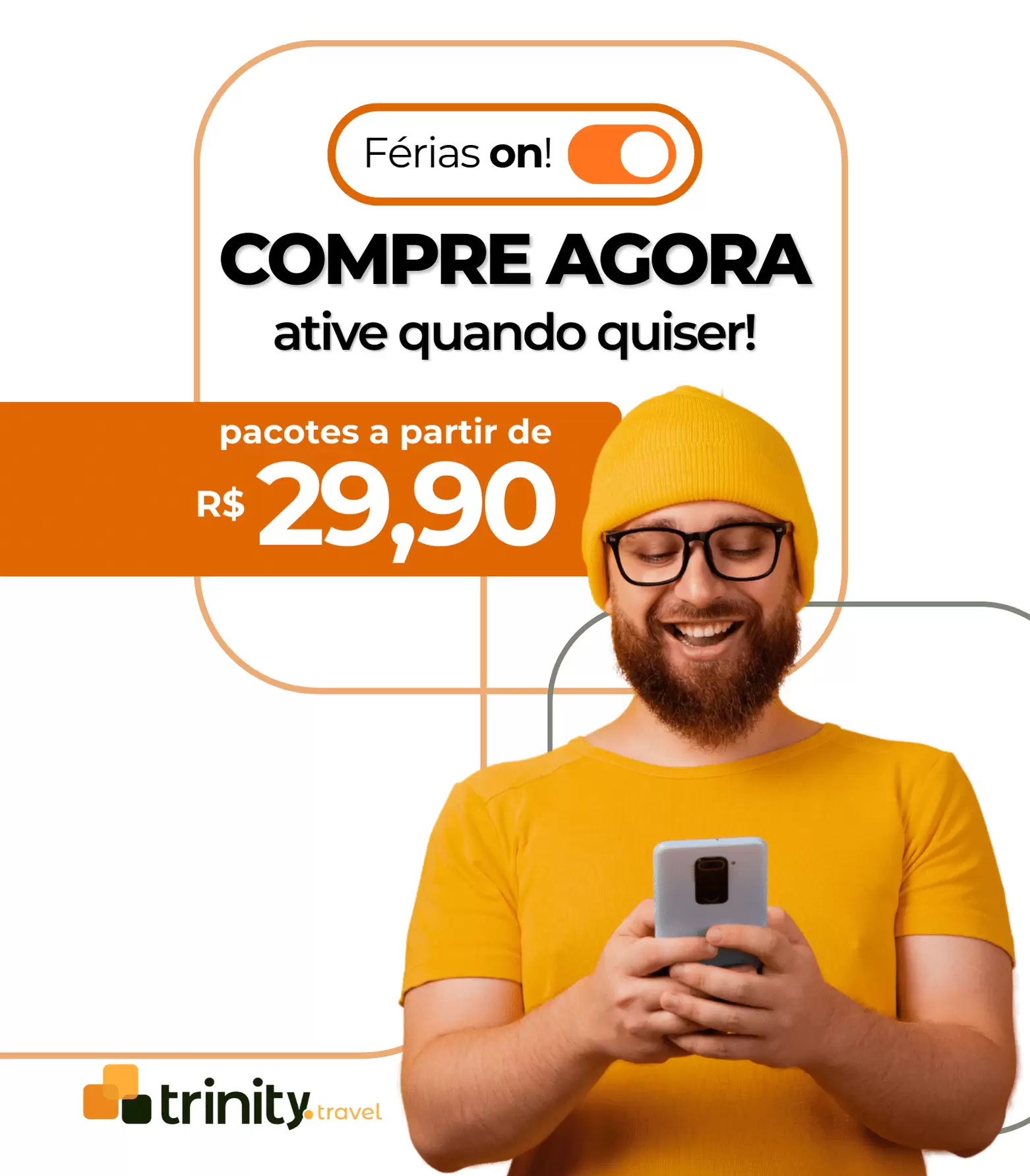 IMPORTANTE: Os eSIM TRINITY TRAVEL não fornecem número local e não permitem efetuar ou receber ligações telefônicas, tampouco enviar ou receber SMS por rede móvel.